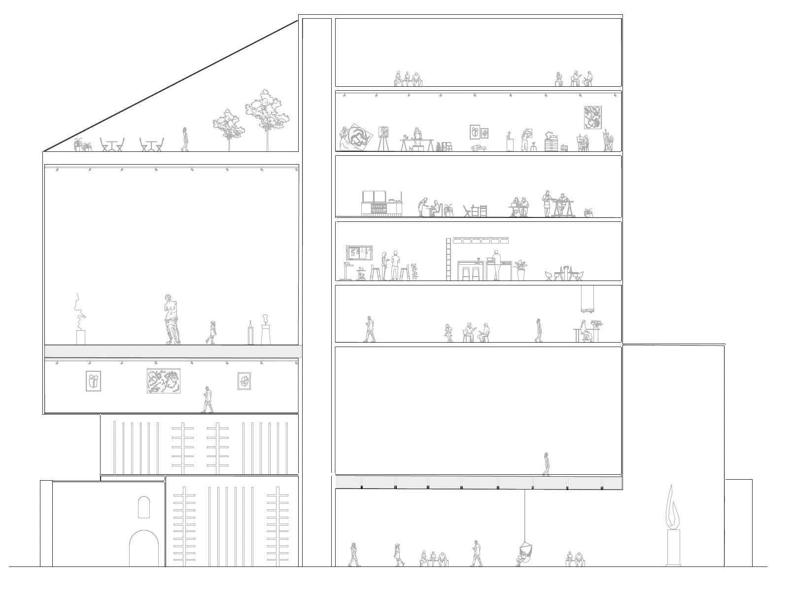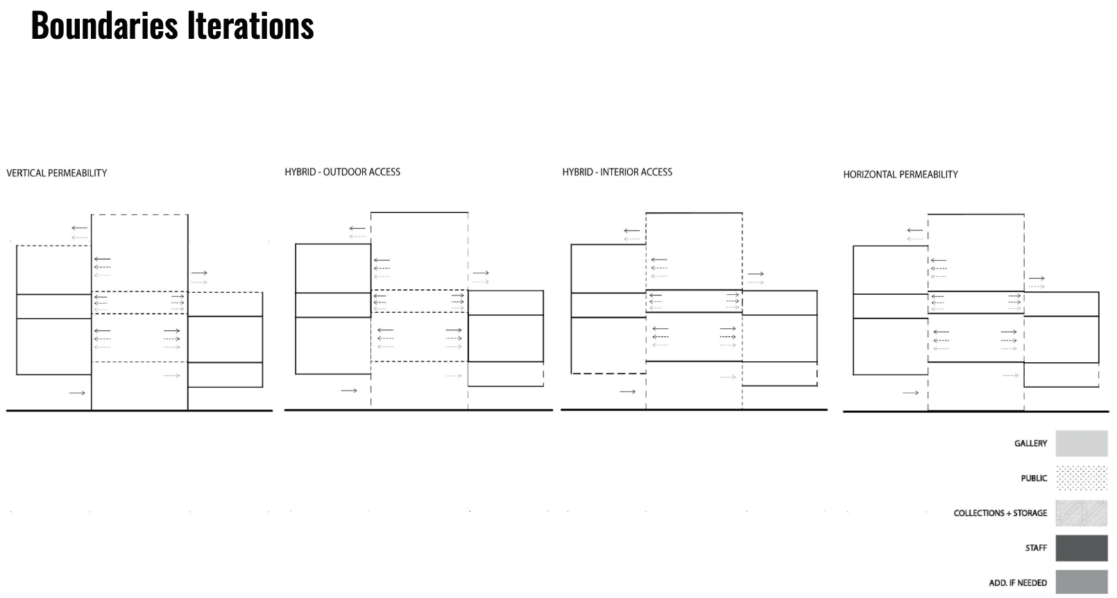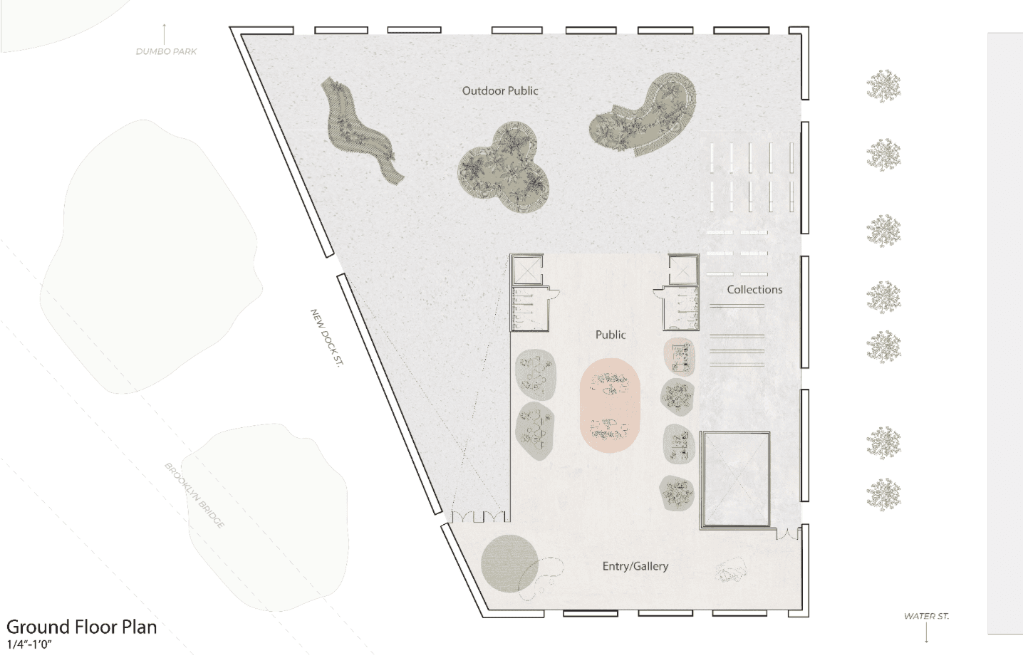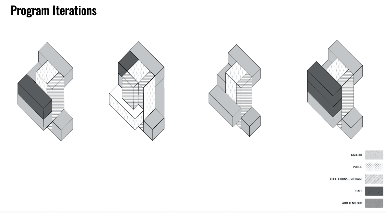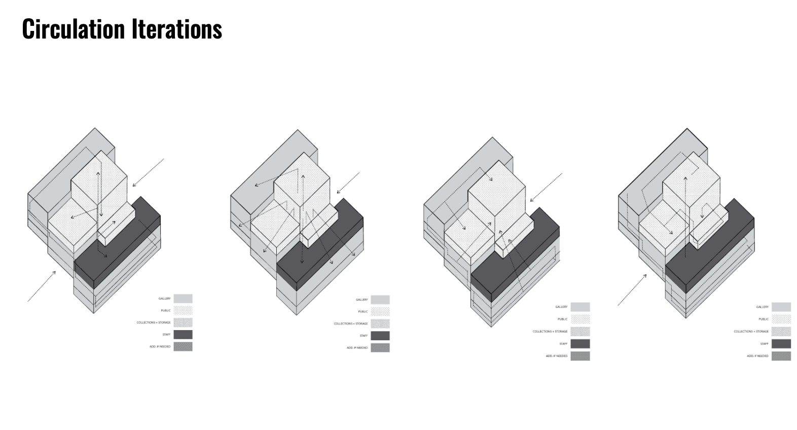A 70,000 sq. ft. satellite museum for the MET - This museum intertwines public spaces, galleries, and collections, creating an engaging environment that inspires and encourages learning, creation, and reflection. My design is an exploration of permeability, access, and storytelling through one's journey of the museum.
