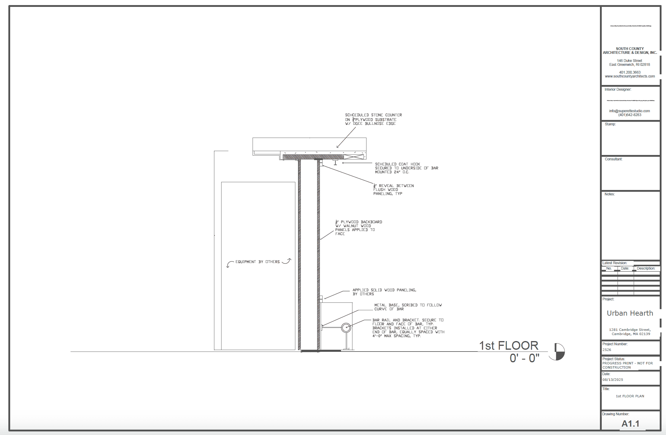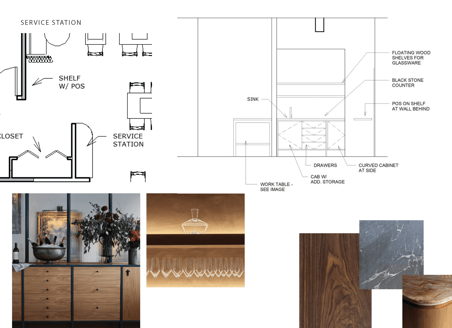 While working with Superette Studio, I contributed to the redesign of Urban Hearth, a neighborhood restaurant in Cambridge, MA. My work included creating concept boards, refining spatial layouts and plans, and developing detailed construction drawings.